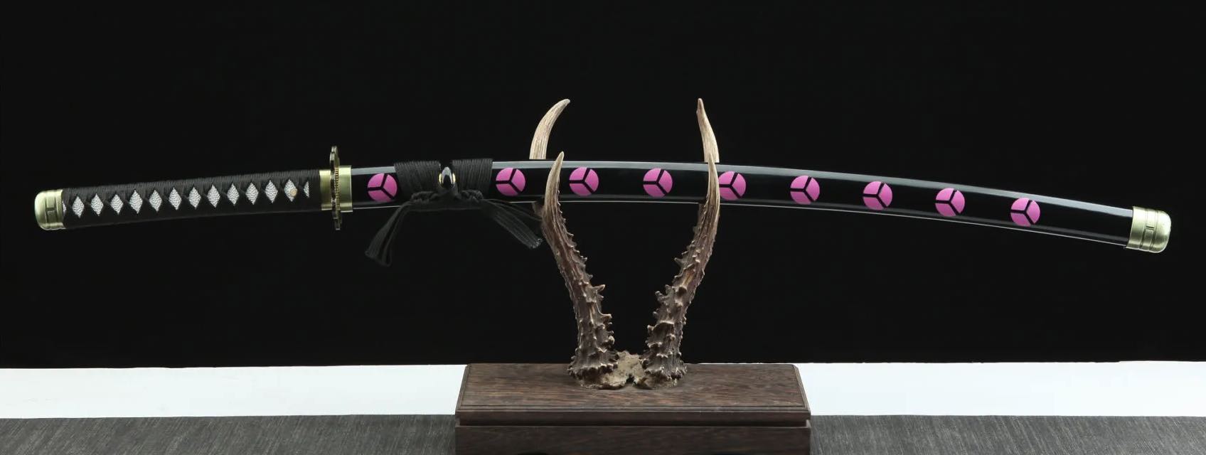 | Scabbard (Saya 鞘): | Black lacquered hardwood, purple patterns |