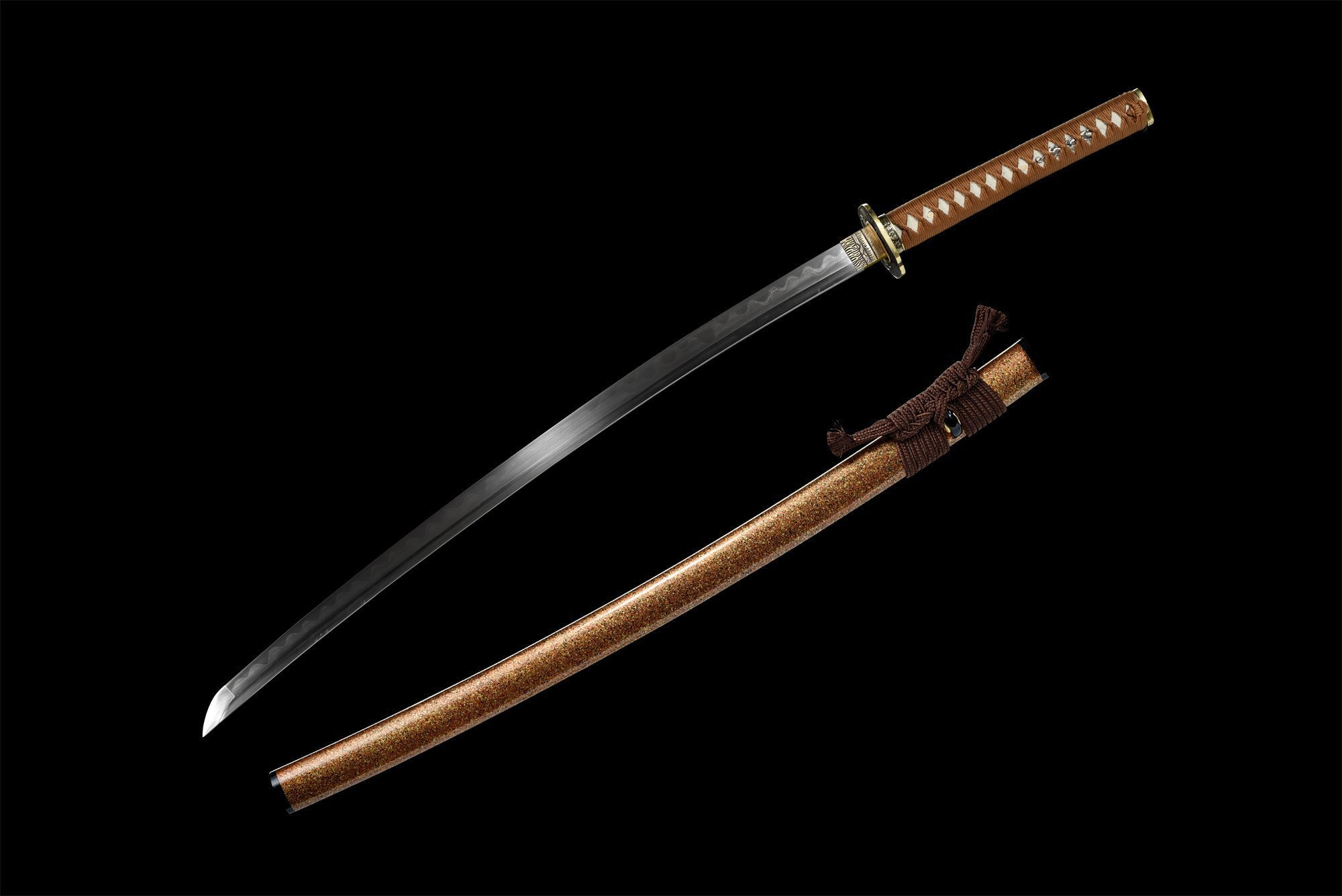 | Scabbard (Saya 鞘): | Lacquered and sandblasted wood in orange tones |