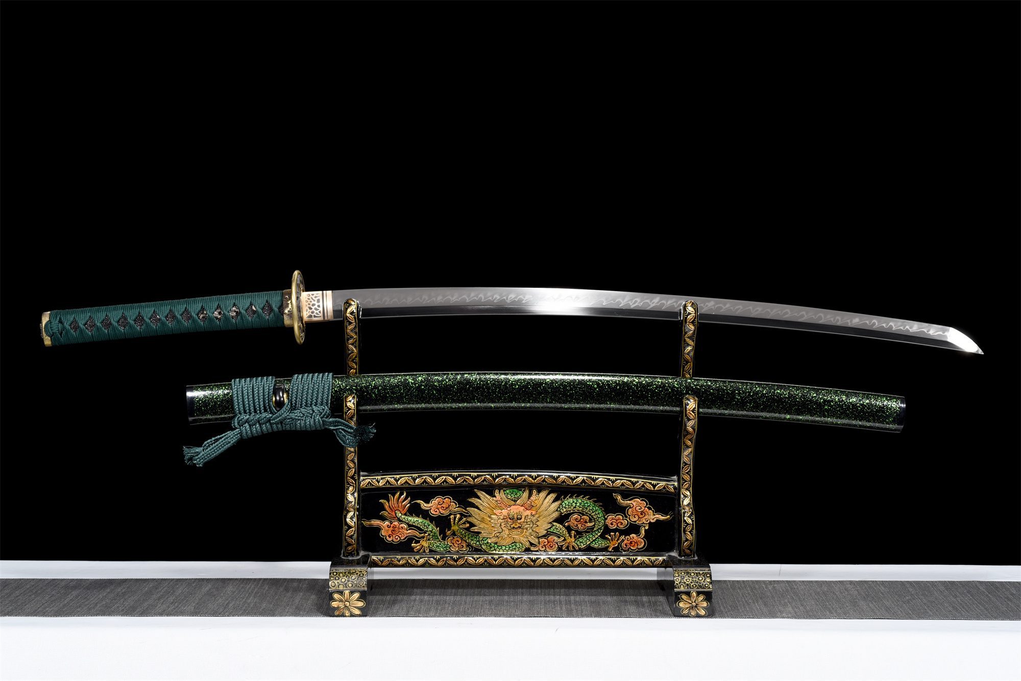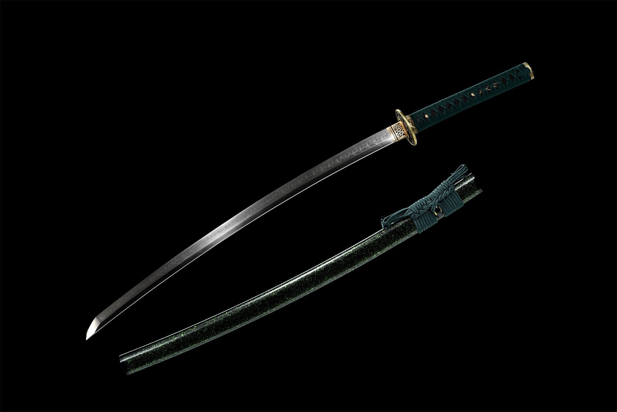 | Scabbard (Saya 鞘): | Black and green grainy lacquered wood |