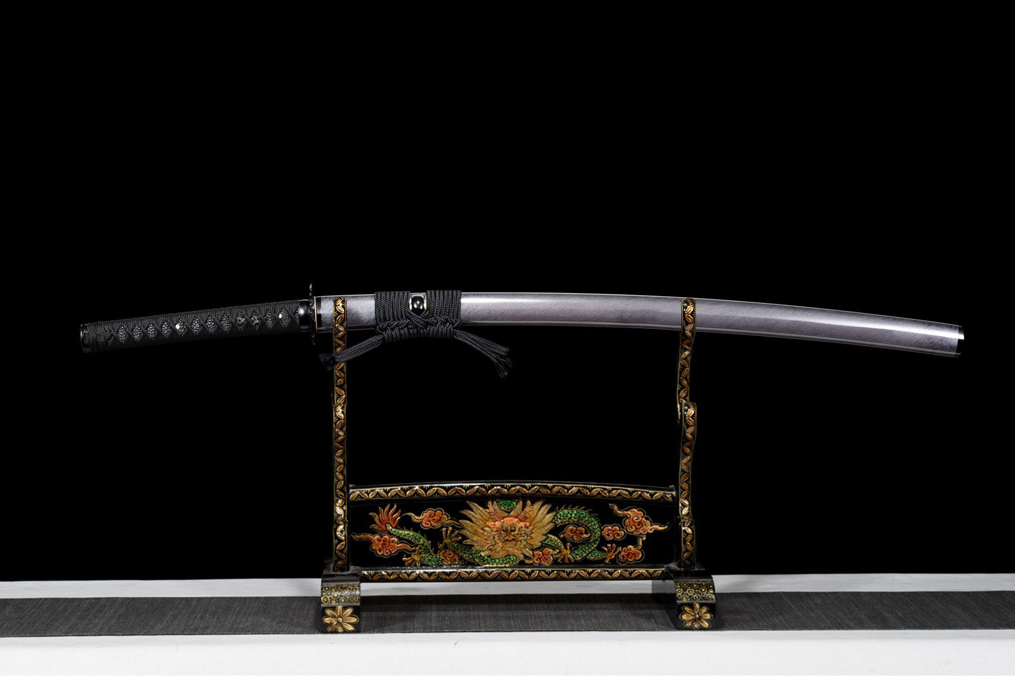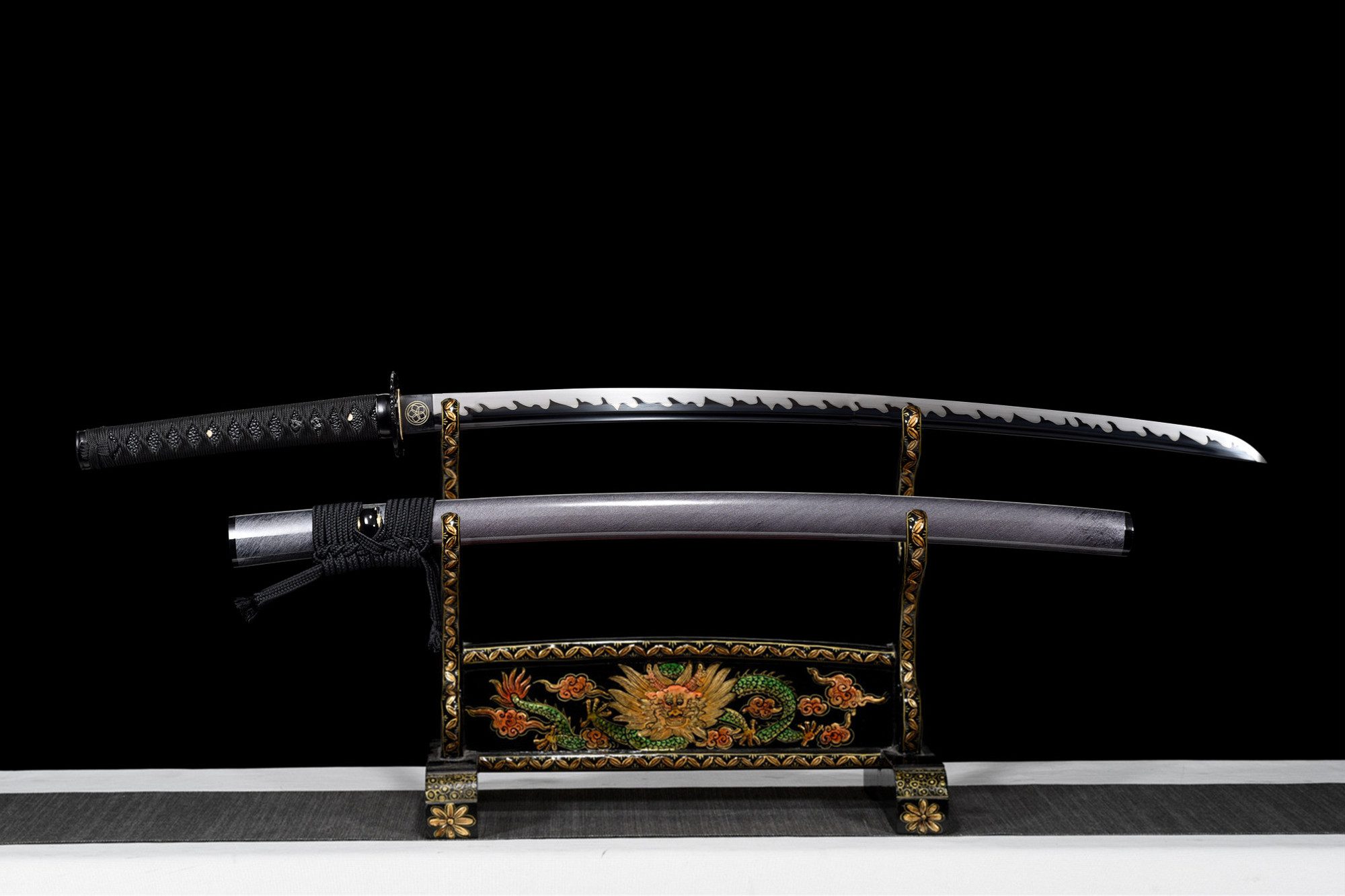| Scabbard (Saya 鞘): | White and black lacquered wood with a brushed effect |