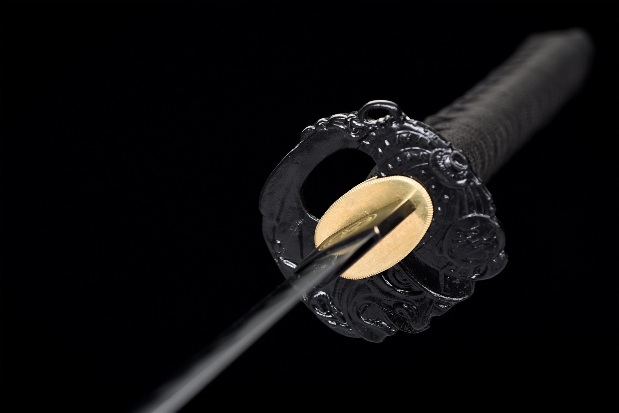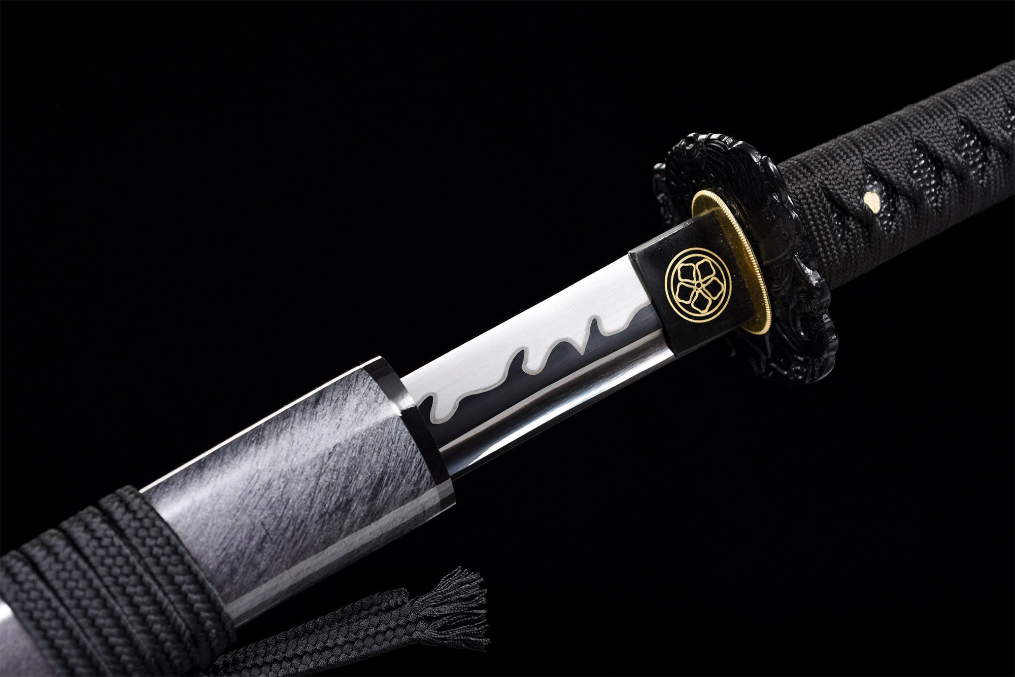 | Guard (Tsuba 鍔): No selection | Black engraved alloy round guard |