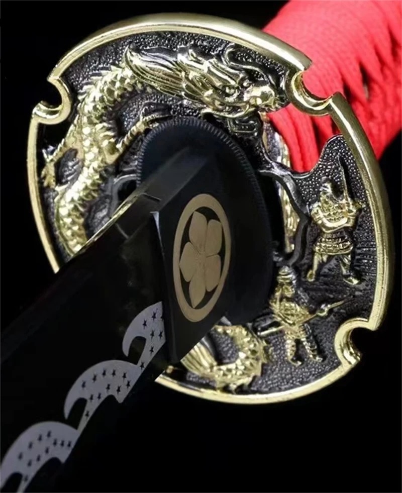 | Guard (Tsuba 鍔): No selection | Black and gold cross with engraved golden dragon |