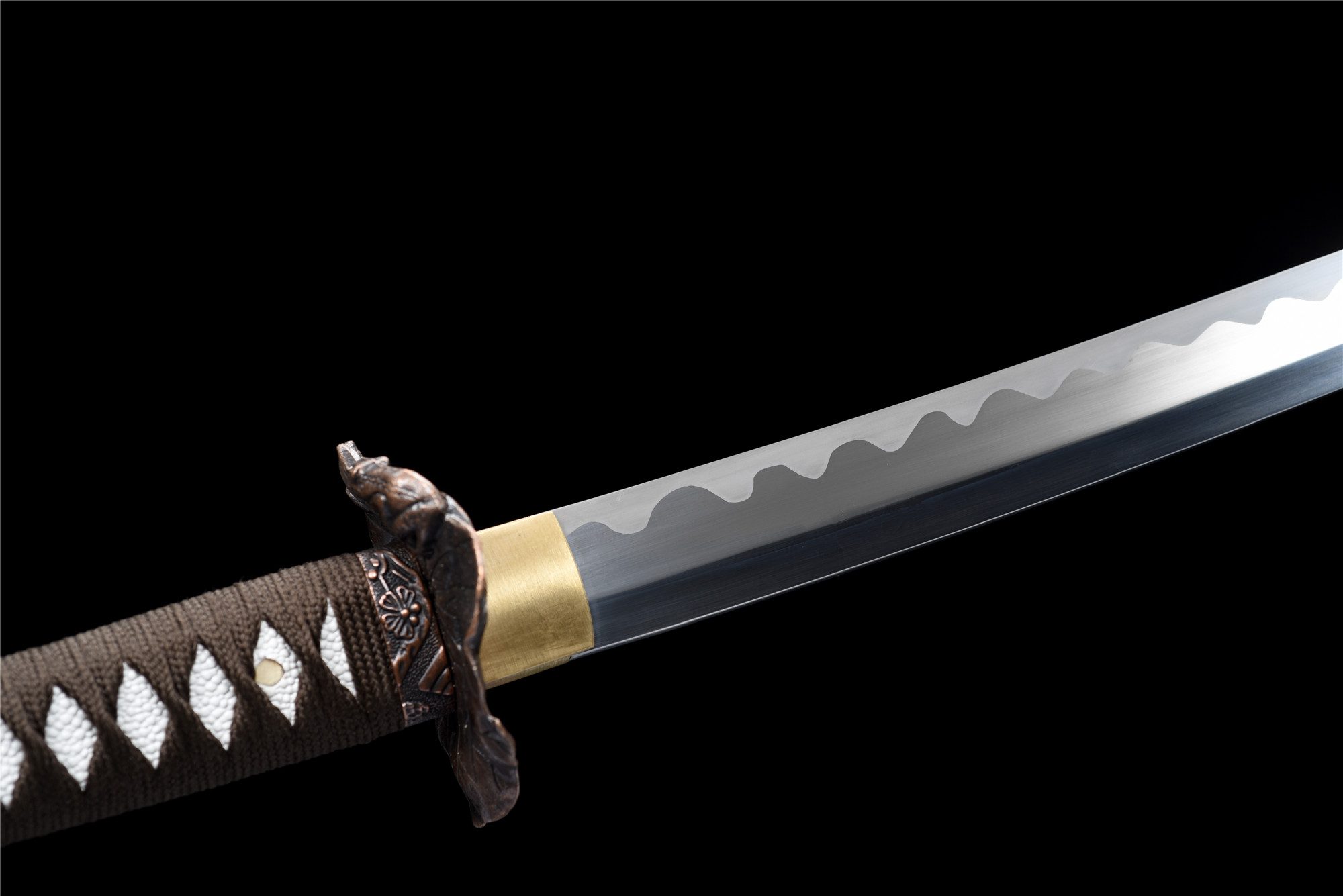 | Guard (Tsuba 鍔): No selection | Bronze-colored alloy in the shape of a leaf in relief |