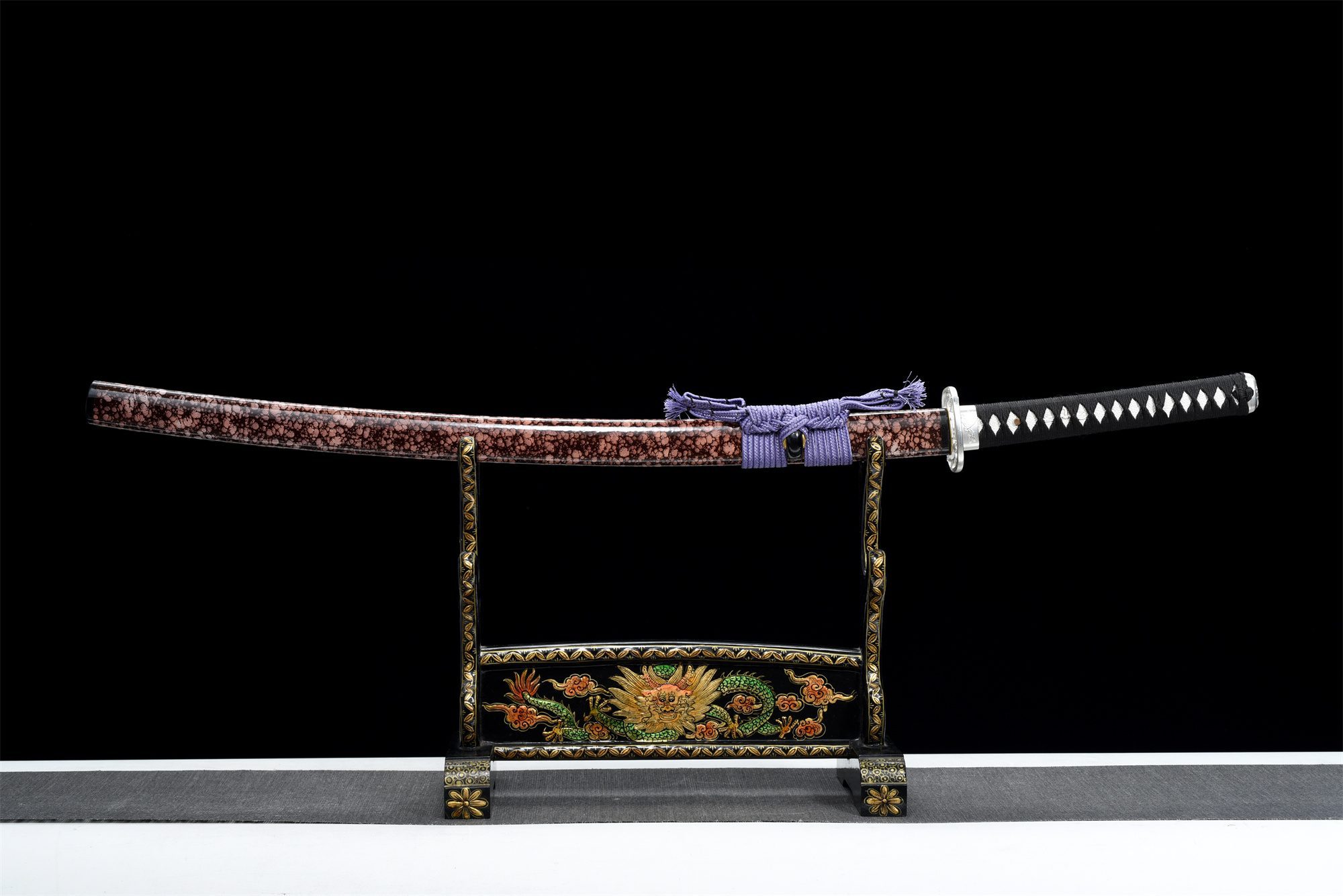 | Scabbard (Saya 鞘): | Black and pink stylized solid wood |