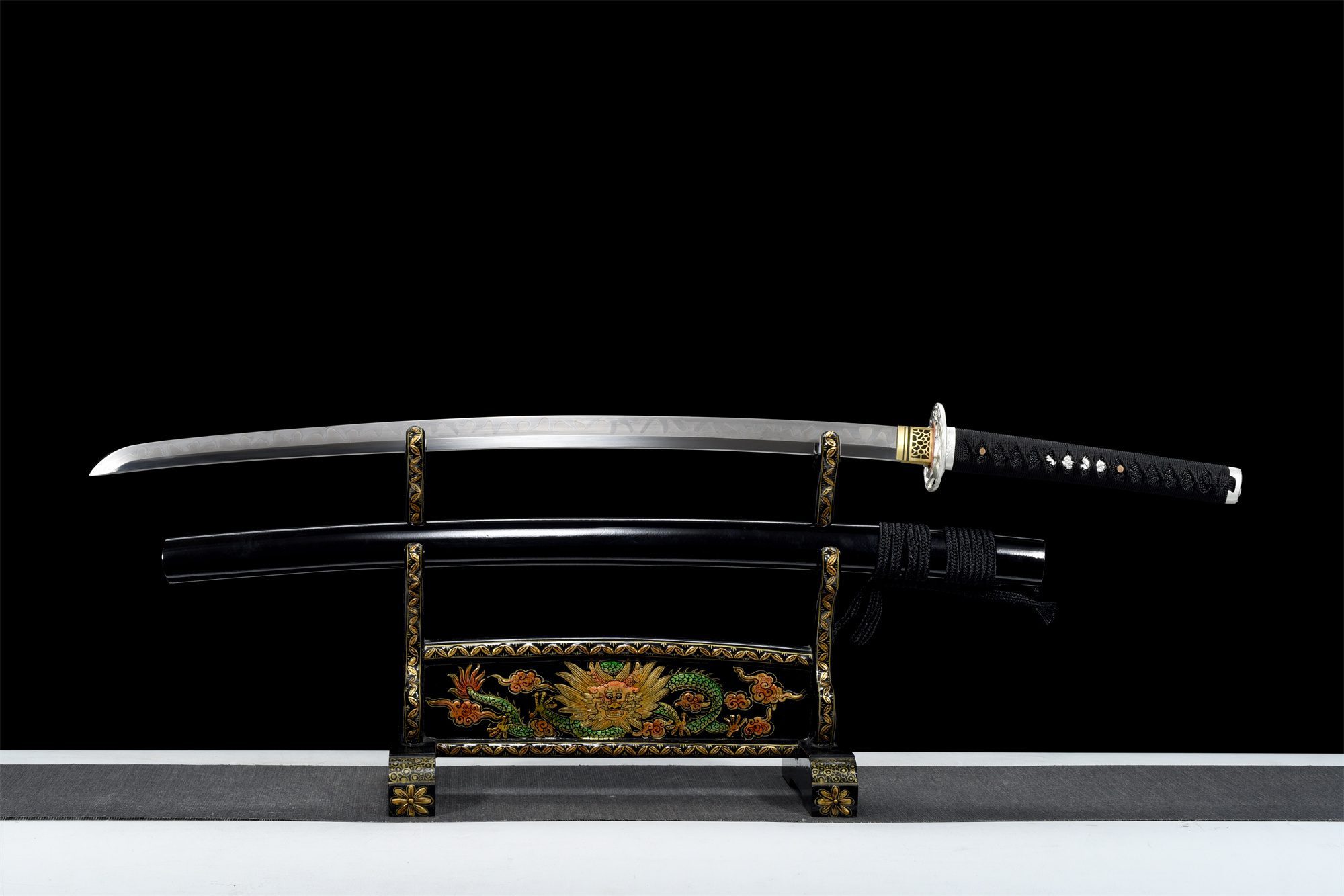 | Scabbard (Saya 鞘): | Black lacquered solid wood, bamboo paint |
