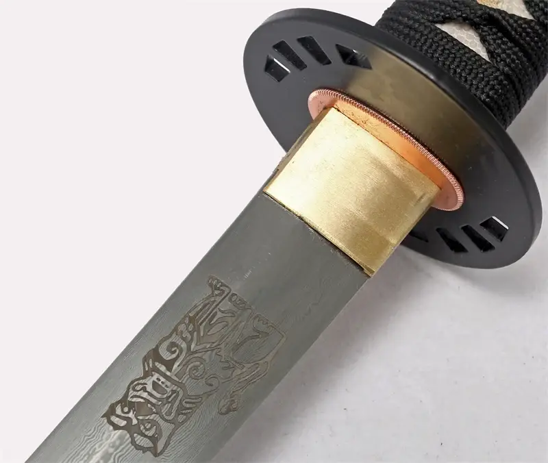 | Scabbard (Saya 鞘): | Black-lacquered hardwood, engraved movie patterns |